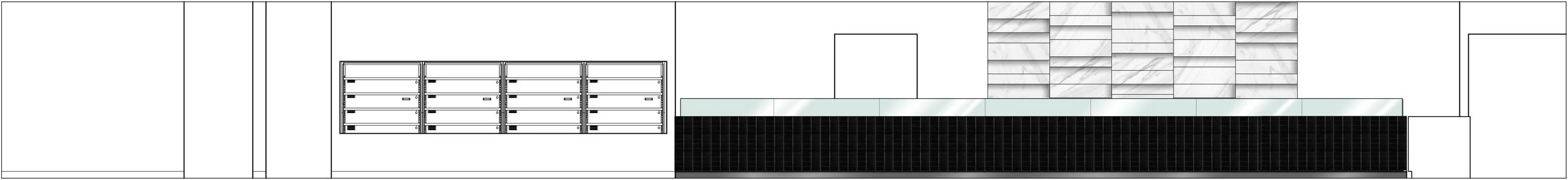 This minimal, clean design features NYC subway tiles, linear glass, and bright lighting—optimized for flow and efficiency during busy lunch hours.